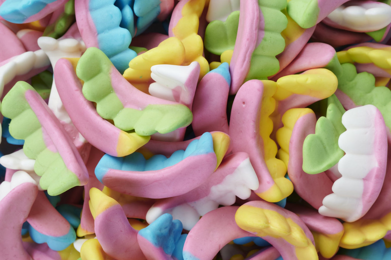 Bolsa de 1 kilo de Dentaduras Foam Fini, golosinas esponjosas con forma de dentadura que conquista desde el primer mordisco. Perfectas para crear una mesa dulce, decorar fiestas temáticas o crear momentazos en cualquier celebración.