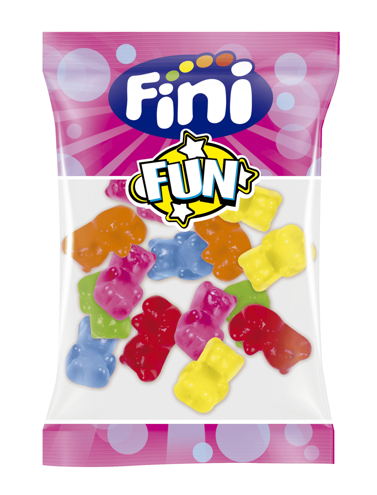 Bolsa Fini Fun con 18 mini packs de 18 gramos cada uno. Un surtido con algunas de las golosinas más icónicas de Fini: fresitas, ositos, moritas y botellas pica. ¡Mini tamaño, maxi diversión! Ideal para preparar conos, piñatas o detalles personalizados.