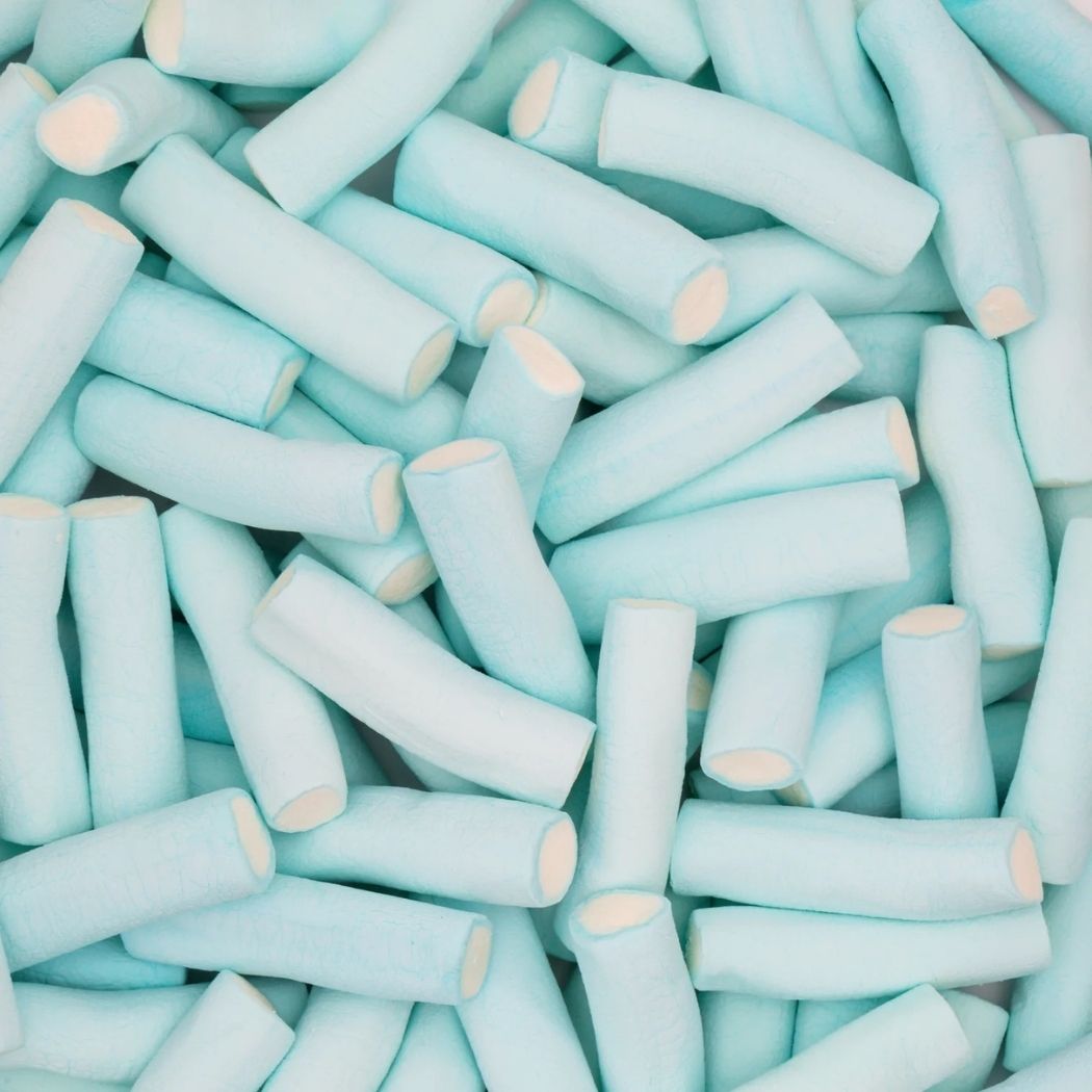 Bolsa de 125 unidades de Finitronc Bicolor Azul Fini, nubes de color azul y blanco con una textura esponjosa y sabor a nata. Perfectas para crear mesas de chuches en tonos azules o dar un toque a tus mesas dulces.