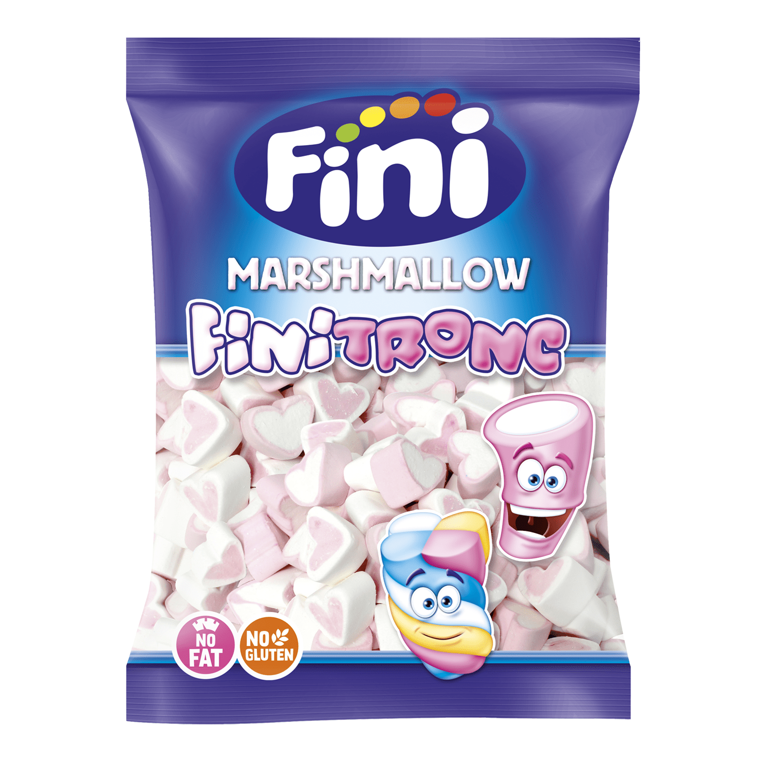 Bolsa con 125 unidades de Finitronc Corazón Fini, nubes con forma de corazón en color rosa y textura esponjosa. Perfectas para detalles personalizados, decorar tartas de chuches o dar un toque a cualquier candy bar.