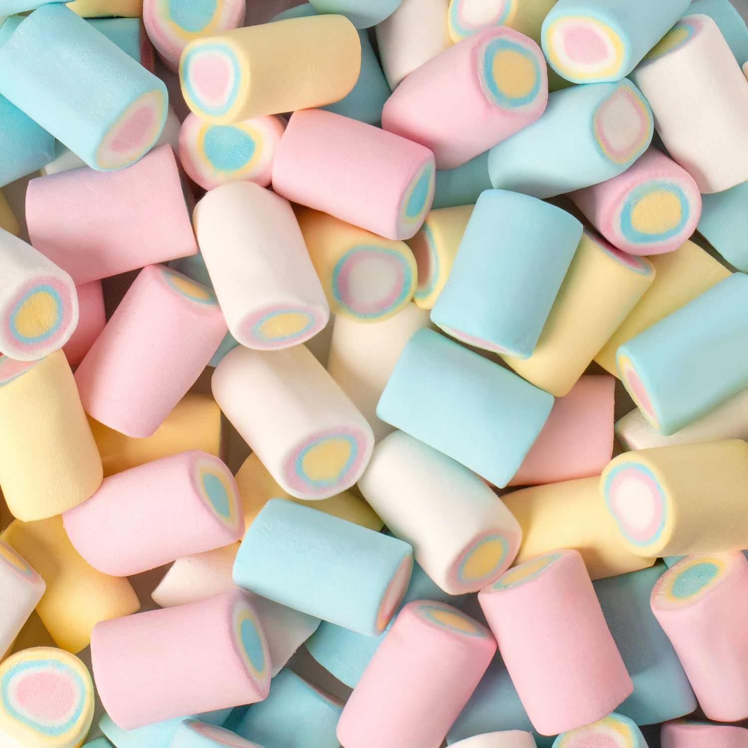 Bolsa con 125 unidades de Finitronc Diana Fini, nubes con forma de diana en tonos azul, rosa, amarillo y blanco, con un sabor dulce y textura esponjosa. Perfectas para tartas de chuches, candy bar o para darle un toque especial.