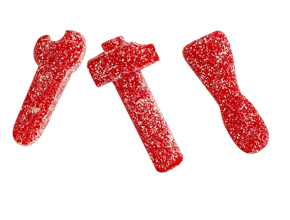 Bolsa de 1 kilo de Herramientas Súper Ácidas Fini, golosinas en forma de herramientas: llaves ácidas, martillos y espátulas, con un sabor a fresa pica-pica. Perfectas para cumpleaños, comuniones o cualquier evento donde se busque diversión.
